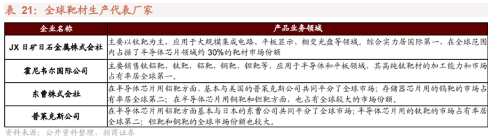 (3)半导体用溅射靶材: 日美厂家占据垄断地位,我国国产化率仅20%