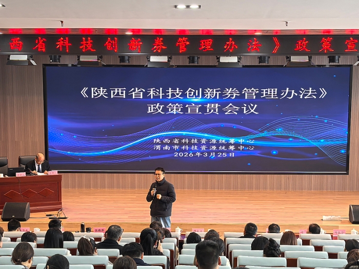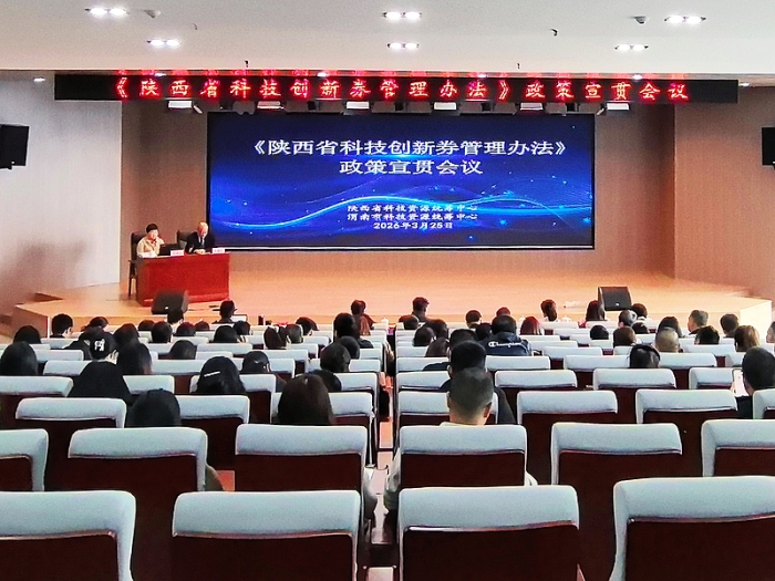 为进一步推动《陕西省科技创新券管理办法》在我市全面落地见效,实现市域内创新资源宣贯全覆盖,切实发挥政策的普惠性与引导性作用,降低各类创新主体的创新成本,规范政策执行流程,3月25日,今年全省首场《陕西省科技创新券管理办法》政策宣贯会议在渭南顺利举行。省科技资源统筹中心科技资源共享服务部部长薄永来以及宣讲团其他成员,市科技局三级调研员党春丽,市科技资源统筹中心主任段作鹏、副主任杜晓玲,各县(市、区)、渭南高新区科技资源统筹中心业务负责人,在渭高校、科研院所、高新区负责人及相关企业代表共计约200人参会。